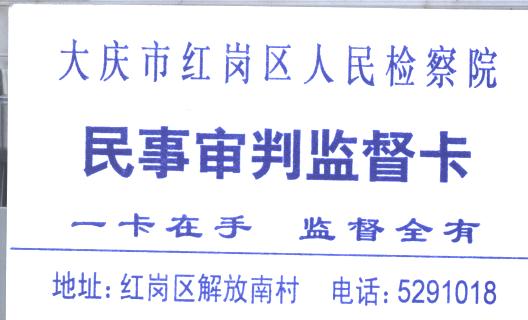 紅崗區檢察院分發的民事審判監督聯系卡[正面]